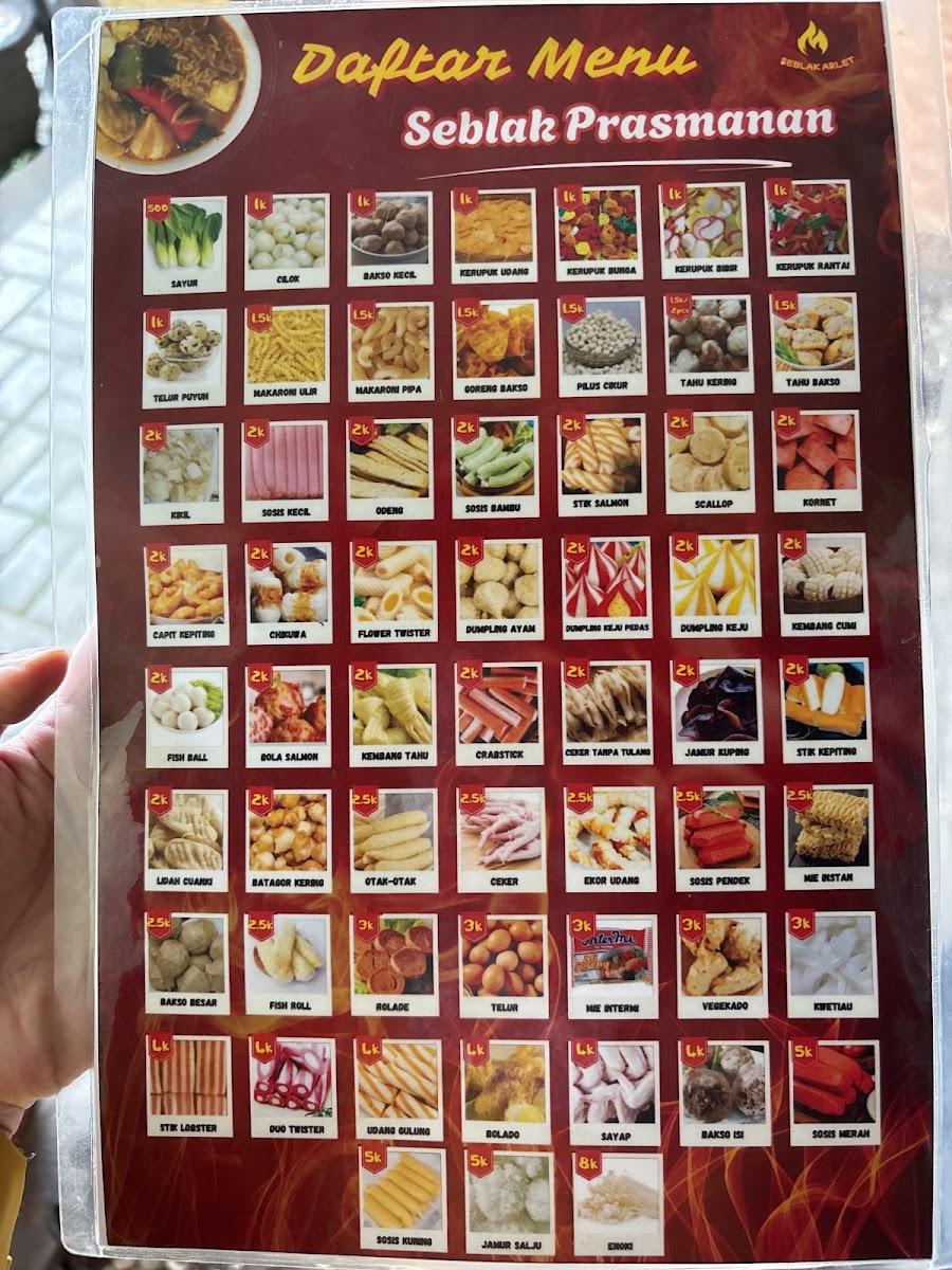 SEBLAK ARLET is a vibrant Indonesian eatery located in Gondanglegi, Malang, serving authentic, home-style seblak with a modern twist. Opened in March 2022, this spot quickly carved a niche with its nostalgic flavors and unique "Lurik"-themed dining ware that evoke memories of traditional Indonesian homes. The menu is a highlight—packed with rich, spicy seblak variations that range from mild to insanely fiery, appealing especially to spice lovers. The broth is both savory and aromatic, perfectly balancing heat and depth.